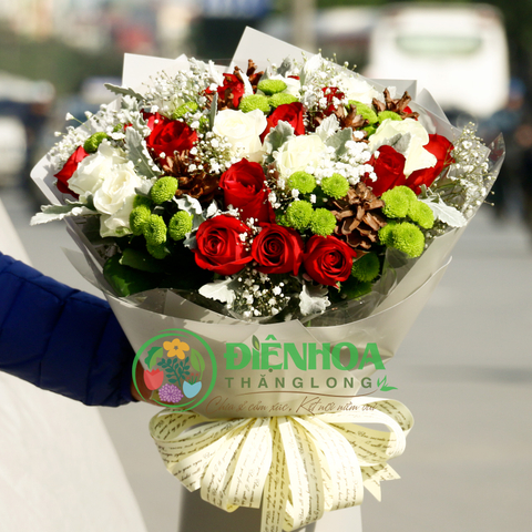 | Hoa chủ đạo | Hồng đỏ, hồng trắng, cúc xanh, babi, quả thông |