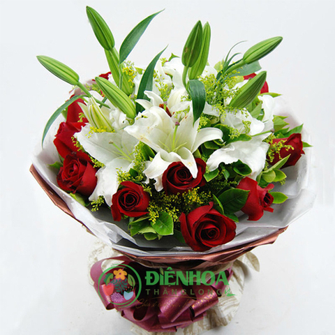 Bó hoa lily trắng và hồng đỏ kết hợp hoa lily trắng, hồng đỏ tươi thắm tạo nên một sản phẩm hài hòa, mang đến cảm giác vui tươi cho người được tặng. Bó hoa vừa thể hiện được cảm xúc say mê, cháy bỏng vừa mang lại sự nhẹ nhàng, tinh tế cho người nhận. Hãy làm cho ngày sinh nhật chủa bạn bè, người thân yêu của mình trở nên ý nghĩa hơn với bó hoa này nhé.