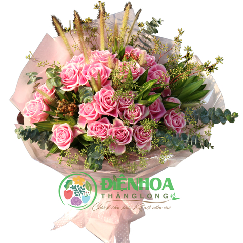 Bó hoa sinh nhật đẹp nhất là sự kết hợp giữa sắc hồng của hoa hồng với sắc xanh của các loại phụ liệu cao cấp… tất cả tạo nên 1 bó hoa lung linh sắc màu, vô cùng tươi tắn và dễ thương. Gửi tặng ai đó bó hoa này là bạn mong muốn người ấy lúc nào cũng vui vẻ, hạnh phúc.