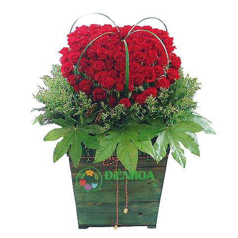 Từ xa xưa, trái tim luôn là biểu tượng của tình yêu nồng nàn. Giỏ hoa trái tim được kết từ 100 bông hồng đỏ tươi thắm cùng những chiếc lá xanh mềm mại uốn quanh làm giỏ hoa trở nên ý nghĩa hơn. Giỏ hoa chính là những thông điệp yêu thương được trao gửi, những điều ngọt ngào cứ mãi ngân vang và mong ước về một gia đình đầm ấm, sum vầy được chuyển tới người nhận.