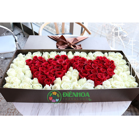 Sản phẩm gồm hoa hồng đỏ và hoa hồng trắng được xếp trong hộp giấy. Hoa hồng đỏ là biểu tượng của tình yêu đẹp, lãng mạn và khi được kết thành hình trái tim thì nó càng tăng thêm mức độ bày tỏ tình cảm. Hộp hoa gồm 2 trái tim hoa hồng đỏ được xếp cạnh nhau nổi bật trên nền sắc trắng hoa hồng. Hộp hoa sẽ làm rung động bất cứ ai nhận được. Sánh đôi là lời nguyện cầu về hạnh phúc bền lâu và thủy chung son sắt.